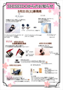 2月と3月の新製品のご案内です♪ご予約も受け付け中です、店頭へのご来店お待ちしております。 ※2/17スタートのエレガンススプリングキャンペーンはABPポイントとの併用はできません