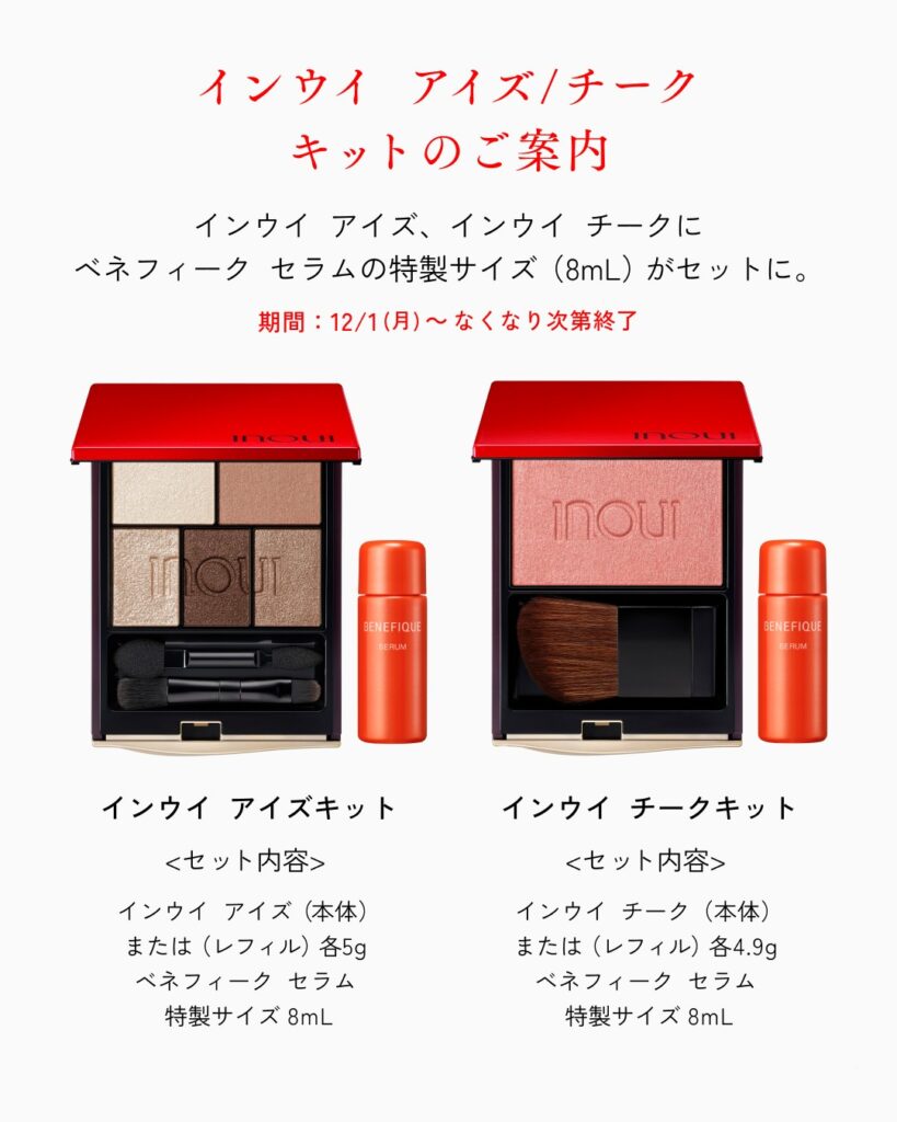 インウイアイズ、インウイチークにベネフィークセラムの特製サイズ(8mL)がセットに。