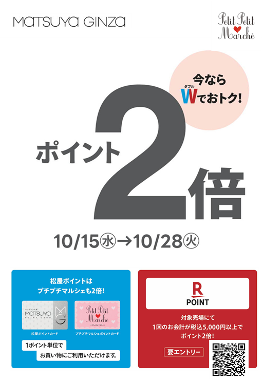 10/15-10/28 お待たせしました!久しぶりの松屋銀座の松屋ポイント2倍ポイント!!