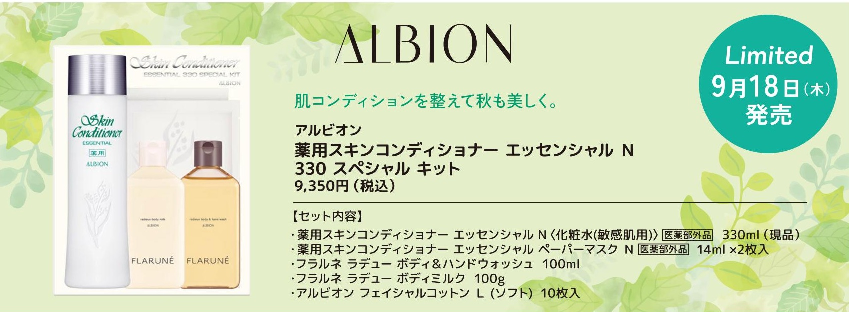 9/18限定発売 アルビオン 薬用スキンコンディショナーエッセンシャルN330スペシャルキット