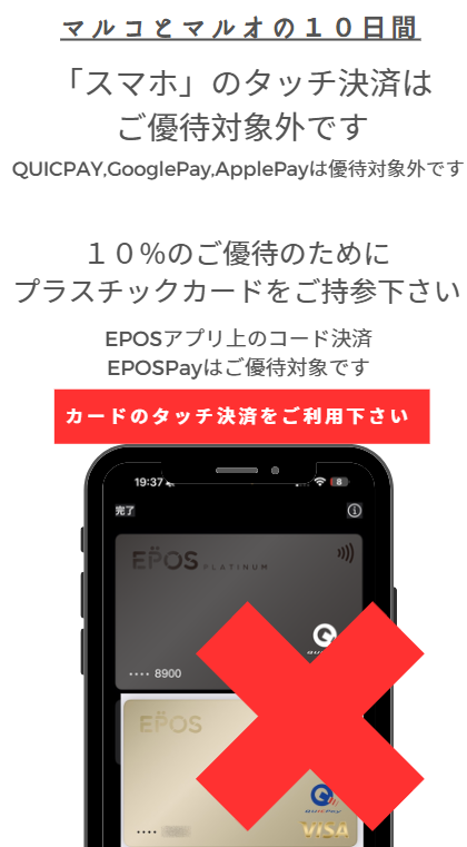 ※スマホのタッチ決済は、マルコとマルオご優待対象外です!!