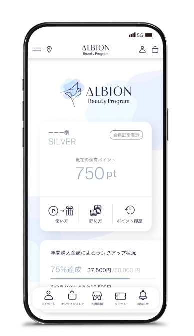 ステータスに応じて、ALBION Beauty Program対象店舗で使えるポイント付与クーポンが配信されます。