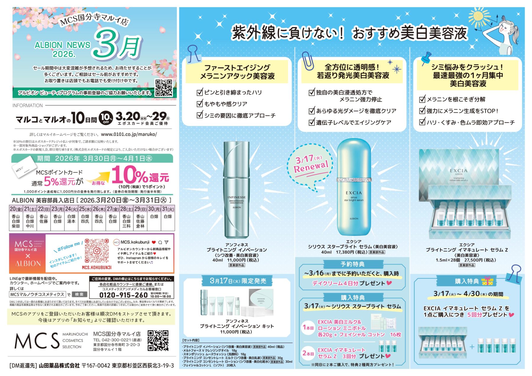 こんにちはMCS国分寺マルイ店アルビオンコーナーです!