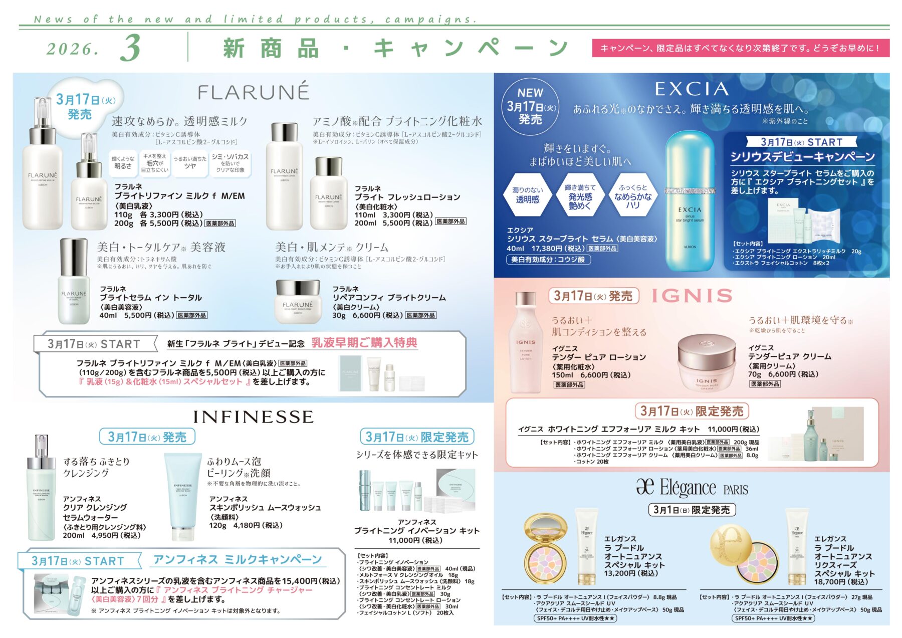 アルビオンコーナーから新製品限定品のご案内です。