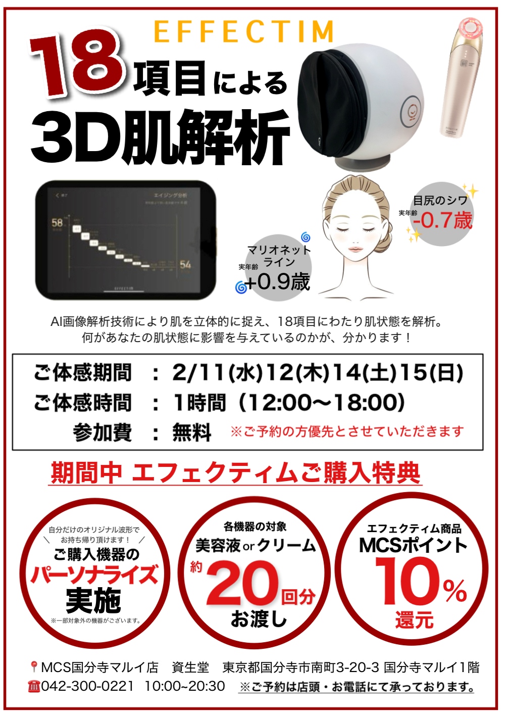 国分寺マルイ店資生堂コーナーよりエフェクティム体感イベントのお知らせ