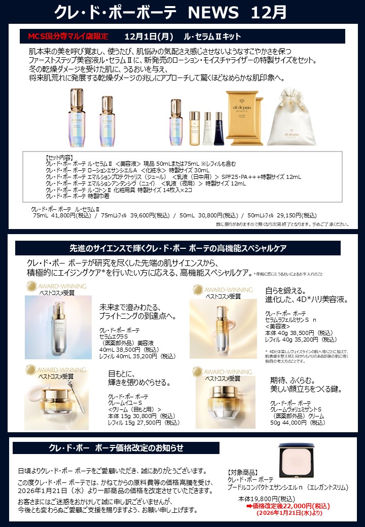 MCSは東京駅前「新丸ビル」と有楽町駅、銀座駅そば「銀座インズ」、国分寺駅前「国分寺マルイ」にある、丸の内発祥の進化した「コスメのセレクトショップ」。忙しい女性の気持ちやお肌に寄り添うべく、国内メーカーを中心に、選び抜かれたコスメブランドを取り揃え、コンシェルジュがブランドの枠を超えてご案内いたします。女性の肌を知り尽くしたこだわりのブランドは女性の美意識を高めてくれます。