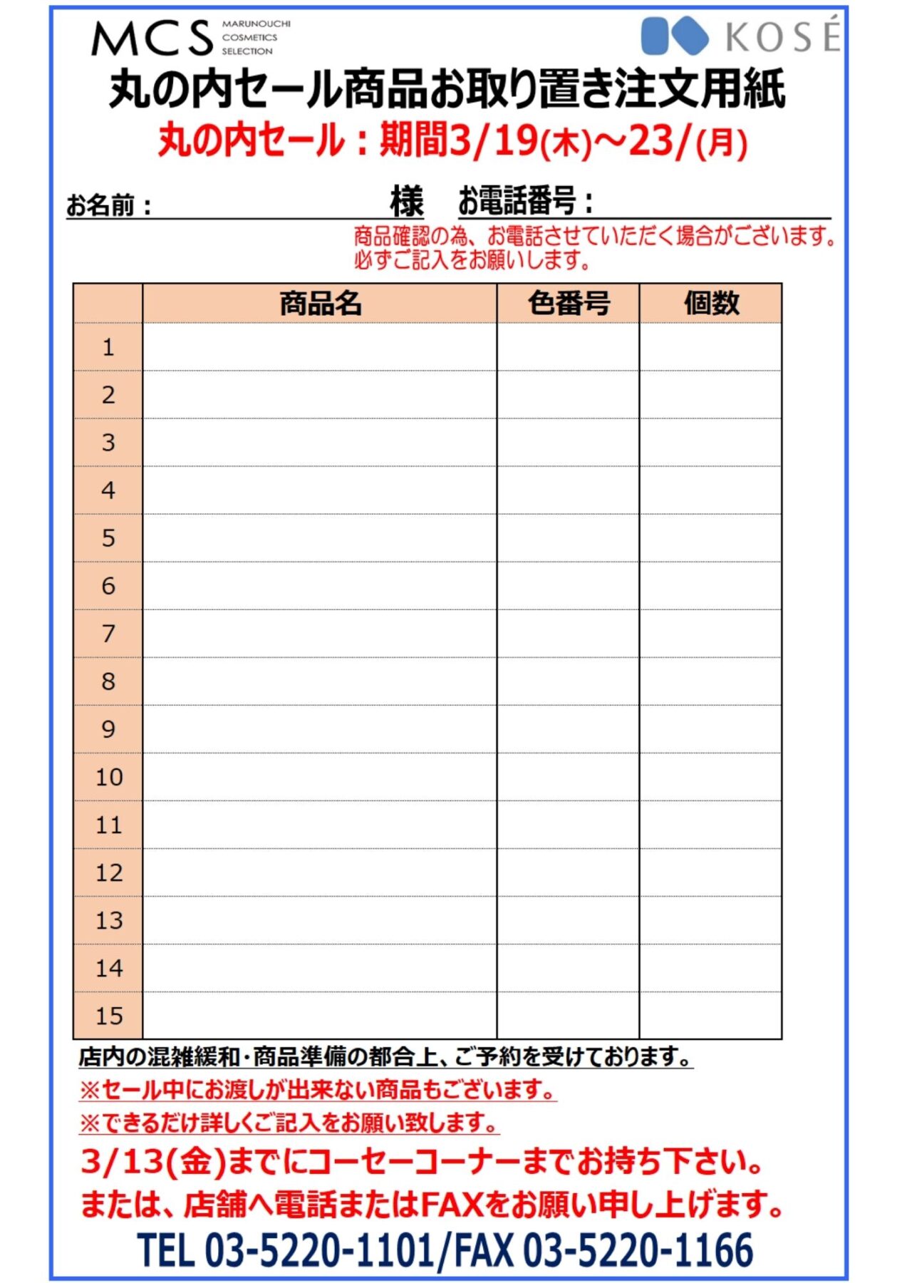 こんにちは、MCS新丸ビル店コーセーからのお知らせです。