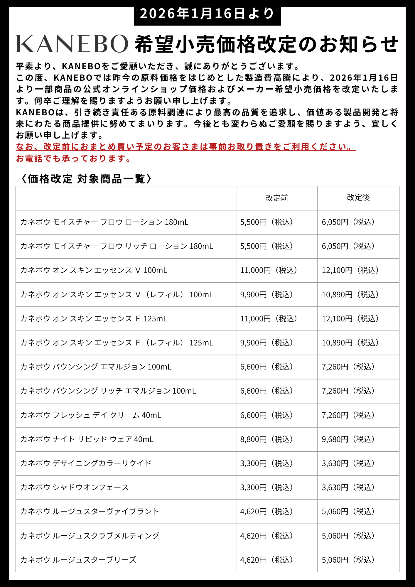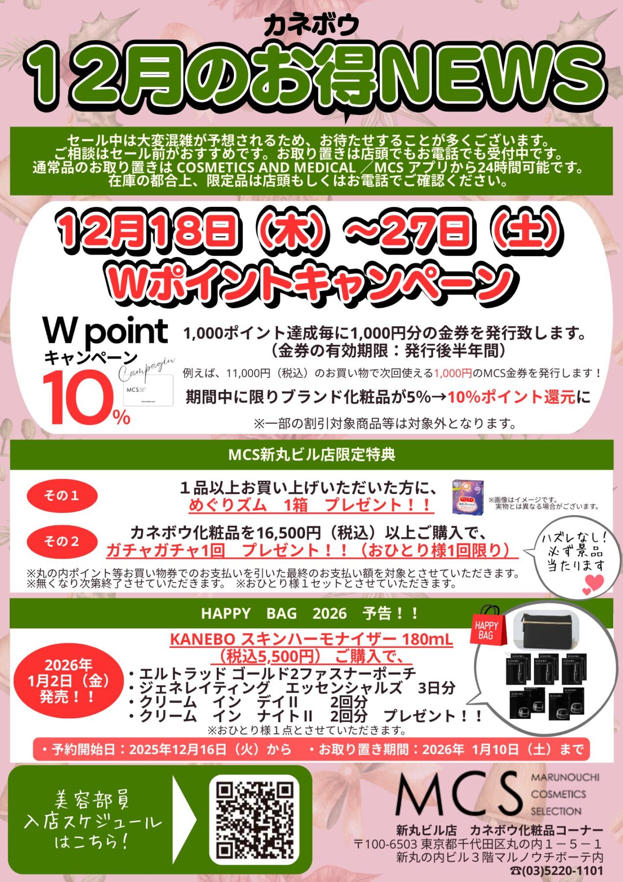 こんにちは、MCS新丸ビル店カネボウからのお知らせです。