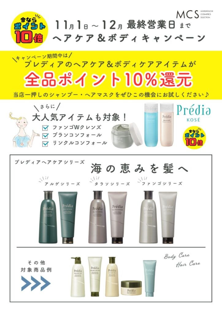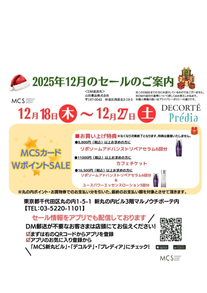 こんにちは、MCS新丸ビル店コーセーからのお知らせです。