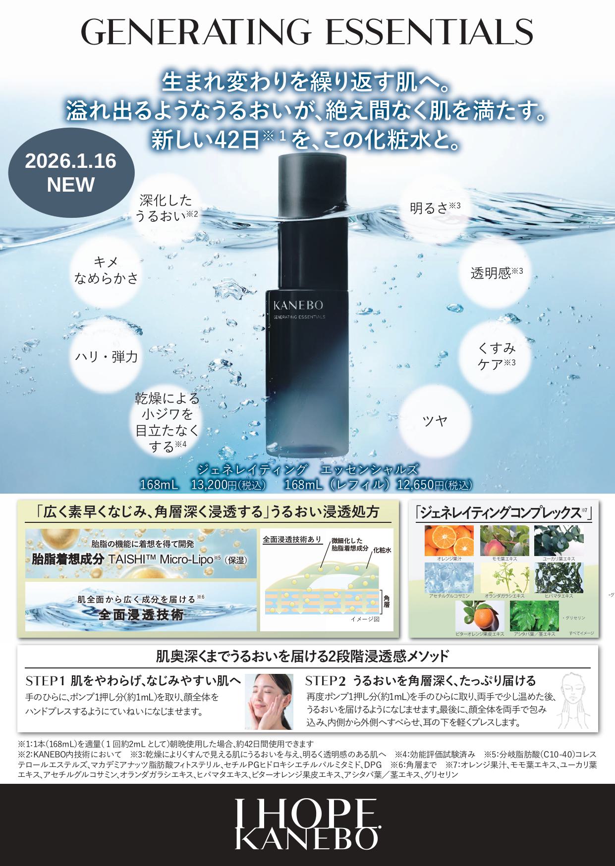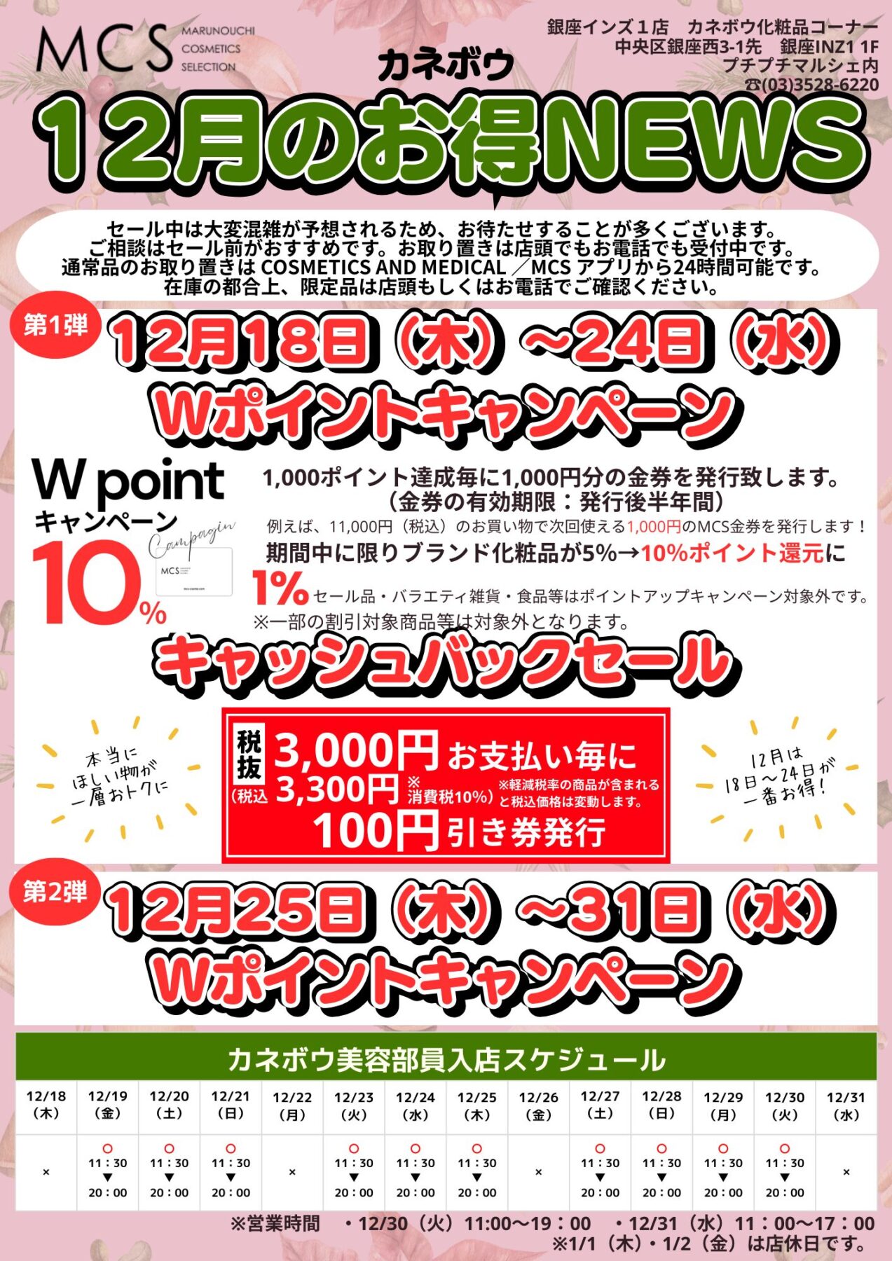 こんにちは、MCS銀座インズ1店カネボウからのお知らせです。
