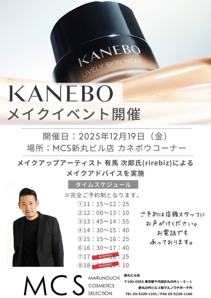 ・ご予約:MCS新丸ビル店カネボウまでお電話ください 03-5220-1101