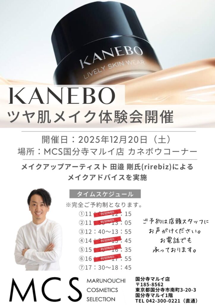 12/20 国分寺マルイ店 メイクアップアーティスト田邉 剛氏(rirebiz)氏による KANEBO メイクイベント