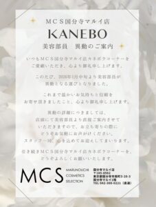 MCS国分寺マルイ店 KANEBOコーナーより\美容部員担当変更のお知らせ/