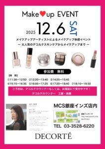 MCSのサービス(カウンセリングやメークアップ アドバイスなど)は、全て無料です。お気軽にどうぞ。(*混雑時はお待ちいただく場合がございます。混雑した時間帯などには、ゆっくりお試しいただけない場合もございますので、ゆっくりお試しになりたい場合には、午前中~夕方までの比較的すいている時間帯にご利用いただくことをおすすめいたします。)詳しくはこちらをご覧下さい。